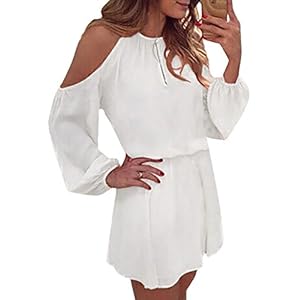 YOINS Sommerkleid Damen Kurz Schulterfrei Kleid Elegante Kleider für Damen Strandmode Langarm Neckholder A Linie