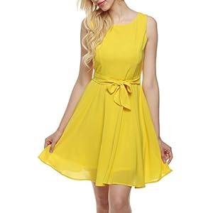 Zeagoo Damen Chiffonkleid Brautjungfernkleid Partykleid Hochzeit Kleider Festkleid mit Gürtel Einfarbig