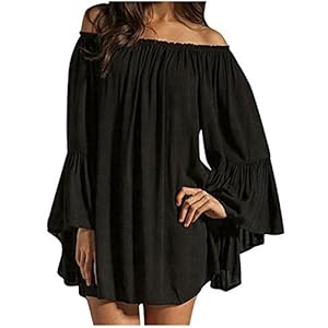 ZANZEA Damen Sommer-Beiläufige Chiffon Langarm-Off Top-Kleid UK18/US XL z-schwarz