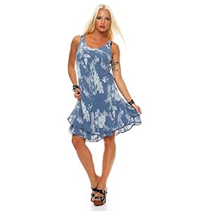 ZARMEXX Damen Sommerkleid Knielang ärmelloses Baumwoll Kleid Strandkleid V-Ausschnitt floraler All-Over Print