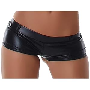 iEFiEL Wetlook Damen Hotpants Ouvert-Slip mit Spitze Rüsche Leder Lack Shorts Strings Erotik Dessous Unterwäsche