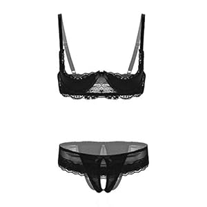 FEESHOW Damen Ouvert Dessous Set Sexy Offene Büstenhebe BH Slip Panty Set Leder Spitze Erotische Unterwäsche Versuchung…