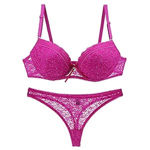 F.Lashes Damen Unterwäsche Dessous Set BH Slip Reizwäsche Push Up Bustier Transparente Spitze String Tanga mit Strass