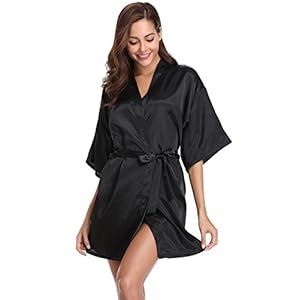 Vlazom Kimono Robe Damen Morgenmantel Kurzer Satin Bademantel Mit Gürtel V-Ausschnitt Kimono