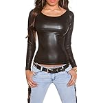 KouCla Shirt in figurbetonter, taillierter Form Stretch in Wetlook Lederlook Optik Langarm