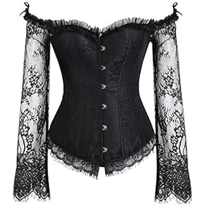 EUDOLAH Damen Corsage Vintage Corsett Gothic Bustier Vollbrust Top mit Ärmel Gothic Korsett Bauchweg Bustiers Top