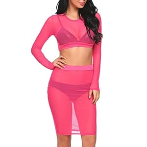 Avidlove Damen Transparent Netz Dessous Langarmbody Ouvert Reizwäsche mit Strumpfhaltergürtel Netzkleid Clubkleid…