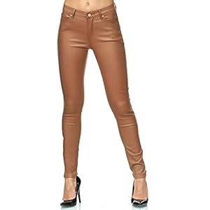 Damen Jeans Hose Lederimitat Damenjeans Lederlook Röhrenjeans Leder-Optik Skinny P097