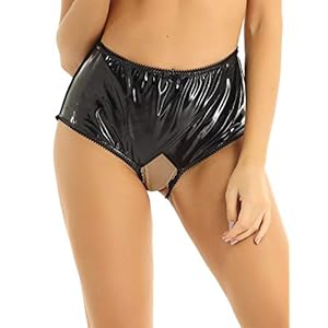 Alvivi Damen Wetlook Ouvert Slip G-String Tanga Panty Dessous offen Crotch Lack-Optik Höschen Hotpants Reizwäsche aus…