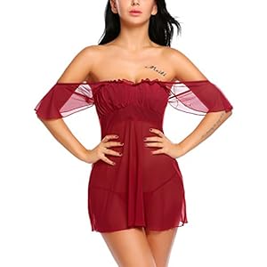 ADOME Dessous Erotik Set kalte Schulter Reizwäsche für Damen Sexy transparenter Spitzen 3/4 Ärmel Nachtwäsche Babydoll…