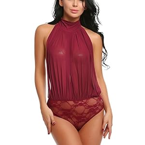 ADOME Damen Rückenfrei Bodys Dessous Sexy Negligee Neckholder Öffnen Vorne Reizwäsche Bodysuit Babydoll Unterwäsche…