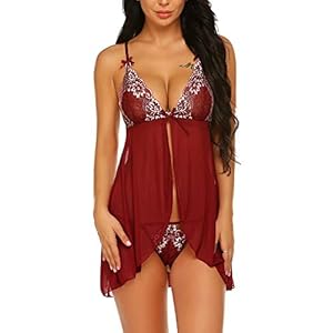 ADOME Damen Spitze Negligee Nachthemd Sexy Nachtwäsche Nachtkleid Lingerie Dessous Set Reizwäsche Sleepwear Kleid…