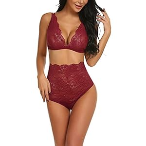 ADOME Damen Dessous Set Sexy BH und Slip Set Lingerie Höhe Taille Unterhose Nachtwäsche Unterwäscshe Lace Spitze V…
