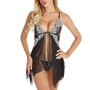 ADOME Babydoll Dessous Spitze Sexy Dessous Set Damen Spitze Reizwäsche Unterwäsche Spitzen-BH Ouvert und Slip und…