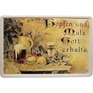 WOGEKA ART Retro Blechschild – Hopfen und Malz Gott erhalt`s – witziger Spruch als Geschenk-Idee zum Geburtstag…