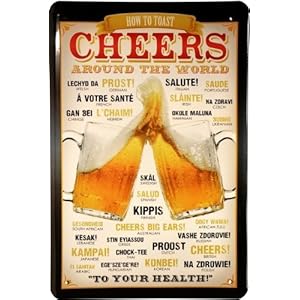 WOGEKA ART Retro Blechschild – Cheers arround the world Beer Bier – witziger Spruch als Geschenk-Idee zum Geburtstag…