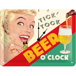 Nostalgic-Art 26213, Say it 50’s Beer O‘ Clock Lady, 15×20 cm Blechschild 15×20 c,m, Metall, bunt, 15 x 20 x 0.2 cm