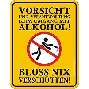 RAHMENLOS Original Blechschild Vorsicht beim Umgang mit Alkohol: bloß nix verschütten Nr.3583