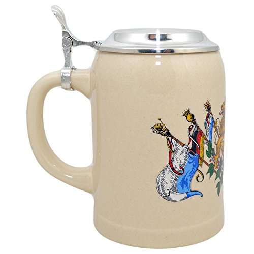 Steinkrug Qua dem bayerischen Wappen. Löwen und Krone sind das signifikante Markenzeichen von Bayern. Ein zeitloser Klassiker im Küchenschrank.