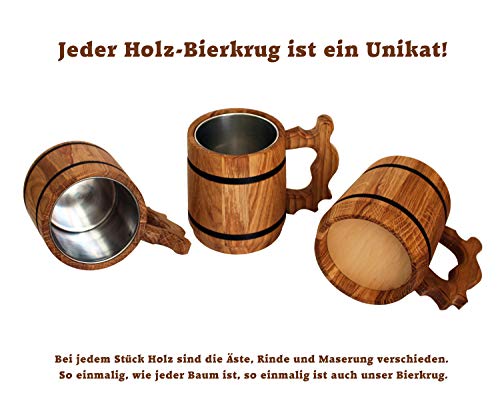 Bierhumpen in Top-Qualität: Der Krug ist hochwertig verarbeitet, hervorragend geschliffen. Durch die Vorbehandlung mit Öl ist der Krug aus Holz langlebig. Der Edelstahleinsatz ist abgesperrt und der Krug als Trinkgefäß angemessen.