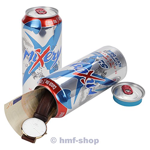 Dosensafe im Design einer Mixery Iced Blue Guarana Bier Getränkedose. Das ideale Versteck für Bargeld, Schlüssel, Schmuck oder anderen Wertgegenstände.