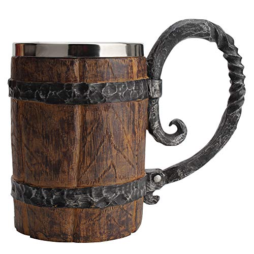 Eimerförmiger Bierkrug, Trinkgefäß mit Griff, Edelstahl-Holz-Doppelwandbierkrug statt Bar-Restaurant-Trinkgefäße