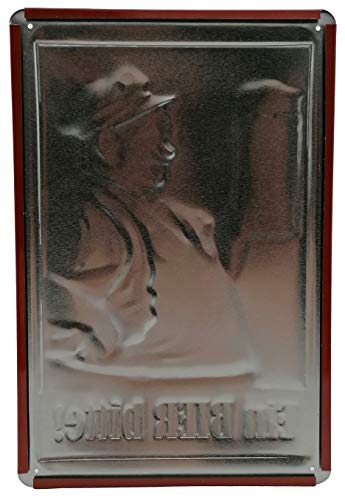3D (Relief)geprägtes original Reproduktion einer BIER Werbung als Retro Blechschild nach einem alten Motiv. Ein Nostalgic Retro Metal Plate im Format: 20 x 30 cm Die aufwändige Reliefprägung lässt die auf qualitativ hochwertigen Stahlblech einbrennlackierten Motive besonders plastisch & ausdrucksstark hervorkommen Dieses exklusive Vintage-Blechschild ist gewölbt und Motivgeprägt, die Ecken sind abgerundet und es besitzt 4 vorgebohrte Löcher für eine einfache Anbringung! (Durch die umgeschlagenen Seiten kann man auch prima doppelseitiges Klebeband oder auch sogenannte „Powerstripes“ verwenden Eine edle Dekoration und Erinnerung – für die Küche, das Wohnzimmer oder die Garage. Das Schild ist neu und in Folie originalverpackt und wird im Luftpolsterumschlag mit Sendungsnachweis Prio versendet.