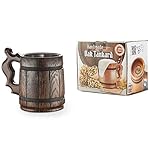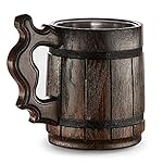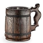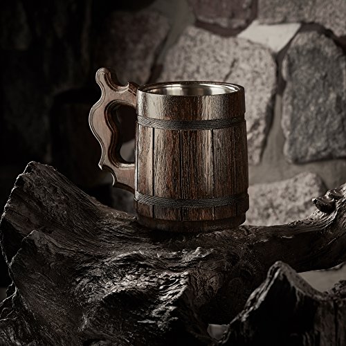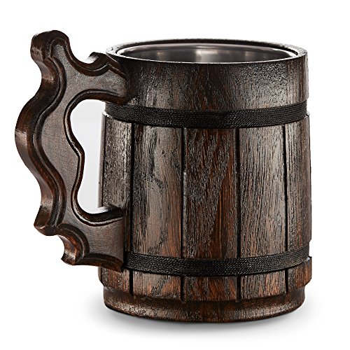 Trinken wie ein mittelalterlicher Krieger Wir haben sie im Kino, im Fernsehen und vielleicht in einer Museumsausstellung gesehen. Jetzt kann man sich einen auf den eigenen Tisch stellen. Dieser solide Bierkrug aus Eichenholz hat ein traditionelles Design. Er sieht so aus, als ob er direkt vom Mittelalter in die Gegenwart gelangt wäre. Das Beste daran – er ist komplett lackiert und die Innenseite ist mit Edelstahl beschichtet, damit man ihn tatsächlich benutzen kann, um sowohl heiße als auch kalte Getränke zu genießen. Handwerkskunst, die eines Königs würdig ist Wenn man sich kopfüber in eine Schlacht stürzt, dann muss das eigene Trinkgefäß erschütterungsfest sein. Letztlich würde man einen starken mittelalterlichen Krieger niemals dabei erwischen, wie er aus einer zierlichen, zerbrechlichen Tasse trinkt, oder? Wir stellen diese Krüge per Hand aus den besten Materialien her, um sicherzustellen, dass sie strapazierfähig und langlebig sind. Sie werden aus echtem, kritisch ausgewähltem Eichenholz hergestellt, das sowohl schön als auch robust ist. Unsere Handwerker haben das Holz so geschnitzt, dass seine natürlichen Attribute hervorgehoben werden, und eine schützende Lackschicht aufgetragen. Und, was noch wichtiger ist, wir haben alles solide zusammengesetzt, damit Sie einen Krug haben, auf den Sie sich noch jahrelang einsam können. Perfekt für eine Vielfältigkeit von Anlässen Dieser Krug ist perfekt für Junggesellenabschiede, historische Neuinszenierungen oder einfach trotzdem, wenn man sich hinsetzen und seine Lieblingsserie mit mittelalterlichen Themen anschauen möchte. Er ist auch ein super Geschenk für Ihren Mann, Freund, besten Freund, Vater oder einen anderen Mann in Ihrem Leben.