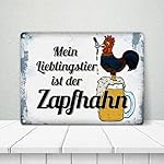Lieferumfang: 1x Metallschild mit Spruch: Mein Lieblingstier ist der Zapfhahn