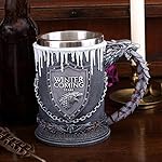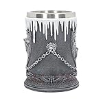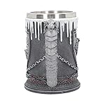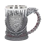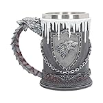 Dieses Produkt ist sondern dekorative Zwecke im Rahmen. Realisieren Sie Ihre Verbundenheit zum König im Norden mit diesem fantastischen Bierkrug von Wahnsinnig. Die Unterseite des Bierkrugs wird von einem imposanten schwarzen Boden angehoben und von einem Lederband mit Nieten und Metallstäben umgeben, die ihn am Ort des Geschehens halten. Die Seiten des Bierkrugs haben graue Schilder, die jeweils das Haussiegel eines wütenden Wolfes versteifen und das Motto & Winter ist Coming. Ketten henken am Boden den Schildern, die zwischen den Nieten verankert sind. Die Wahrheit des Motto wird durch die gefrorenen Eiszapfen an der Stahlfelge dargestellt. Der Griff wird von der Basis nach oben geschwungen, durch segmentierte Rüstungsplatten geschützt, die mit dünnen Lederriemen gehalten werden, bevor er in den Mund eines imposanten Wolfes eindringt. In feinstem Harz gegossen und liebevoll von Hand bemalt. Dieser Krug verfügt über einen herausnehmbaren Edelstahleinsatz sondern eine einfache Reinigung.