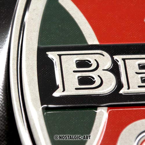 Retro Dekoration der besonderen Art: Blechschilder sind beliebte Retro-Objekte, die Stil und Persönlichkeit in die eigenen vier Wände bringen. Viele der Motive wecken Erinnerungen an die „gute alte Zeit“ und zaubern einen Hauch von Nostalgie in die Küche, ins Wohnzimmer oder die Garage. Ob als Geschenk für Ihre Liebsten oder für Ihr Zuhause – freuen Sie sich auf ein schönes dekoratives Blechschild im Format 20 x 30 cm. Das entspricht ungefähr der Größe DIN A4. Das Schild ist in Deutschland gefertigt und überzeugt auf Stahlblech mit einer hochwertigen Verarbeitung und brillanten Druckfarben. Das Material steht für Qualität und Langlebigkeit und hebt sich deutlich von Alternativen wie Postern oder Plastikprodukten ab. Angepasst auf das Motiv werden bestimmte Bereiche auf mehreren Ebenen hervorgehoben. Diese Motivprägung lässt das Design besonders plastisch wirken. Für zusätzliche Stabilität sorgt eine leichte Wölbung des Schildes. Durch vorgebohrte Löcher in allen vier Ecken lässt sich dieses Blechschild kinderleicht an der Wand anbringen.