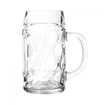Traditioneller Bier-Maßkrug fürs Oktoberfest mit Eichstrich und großem Henkel. Die schönen großen Wasserblasen zieren umlaufend das glasklare Trinkgefäß und verleihen dem großen Glasbecher eine wunderschöne 3D-Optik. Die perfekte Grundlage für das frisch-gezapfte ,,Kühle Blonde‘!