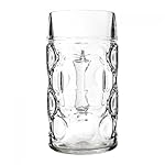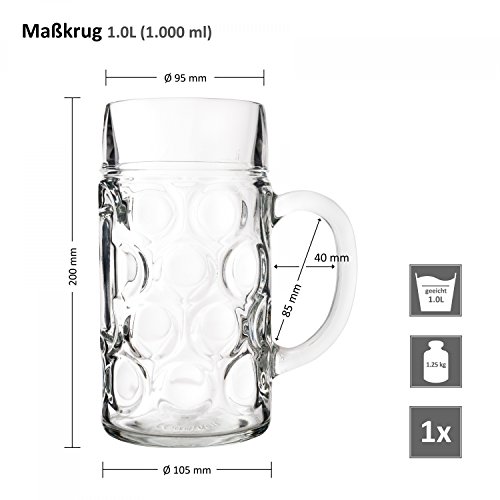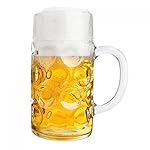 Traditioneller Bier-Maßkrug fürs Oktoberfest mit Eichstrich und großem Henkel. Die schönen großen Wasserblasen zieren umlaufend das glasklare Trinkgefäß und verleihen dem großen Glasbecher eine wunderschöne 3D-Optik. Die perfekte Grundlage für frisch-gezapftes ,,Kühles Blondes‘!