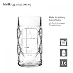 1L Maßkrug mit Schild + Eich-Strich, 1.000 ml Bierkrug, Bierglas mit großem Henkel, Partyglas