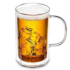 ZENS Borosilikat-Doppelwand-Bierglas, einzigartiges Achteck 0,5 Liter mit Henkel, klar, 550ml
